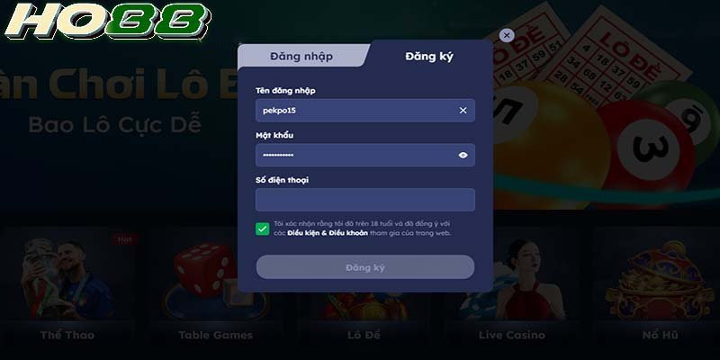 Chúc mừng bạn đã trở thành thành viên của HO88! Sử dụng tên đăng nhập và mật khẩu vừa tạo để đăng nhập và bắt đầu trải nghiệm kho game đa dạng, từ cá cược thể thao đến các trò chơi casino hấp dẫn.